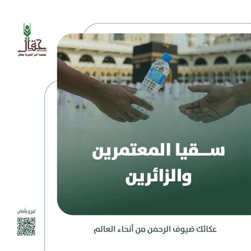 اسقِ ضيوف الرحمن من المعتمرين والزائرين القاصدين لبيت الله الحرام لتروي عطشهم ولك أجر إروائهم قال رسول الله ﷺ: "أفضل الصدقة سقي الماء."